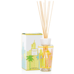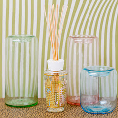 The Miami home fragrance diffuser is decorated with a pastel and gold screen print inspired by the architecture of the art deco buildings in South Beach.16 cm | 250 m