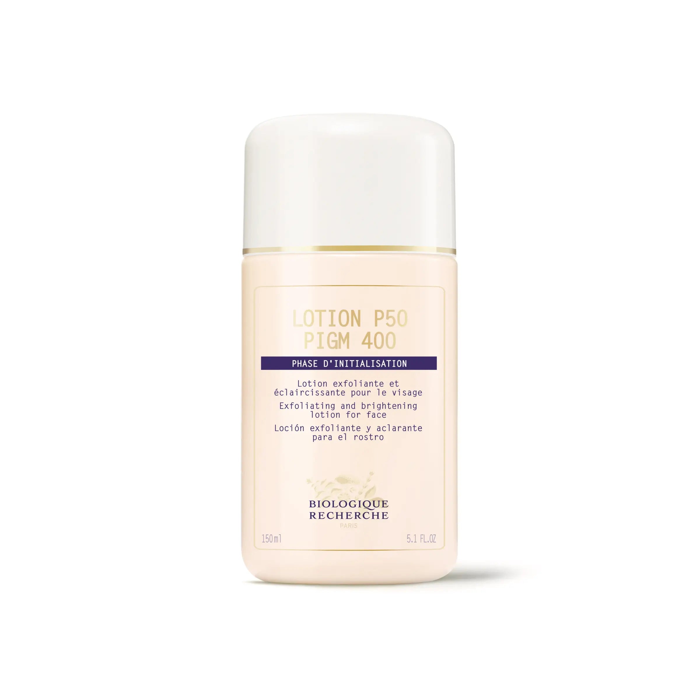 Lotion P50 PIGM 400 is a vitamin-enriched exfoliating lotion that gently purifies, brightens and fades out the appearance of pigmentation spots.